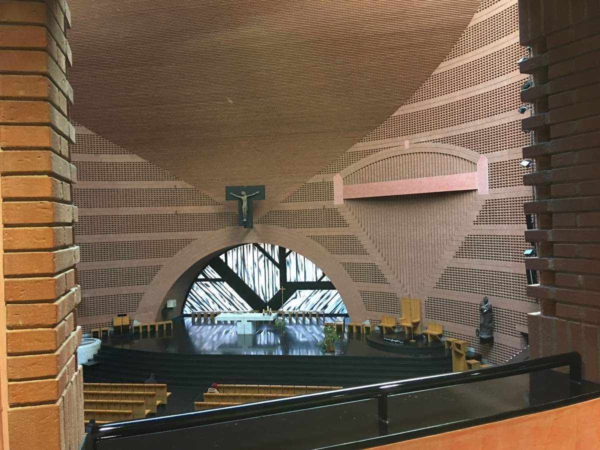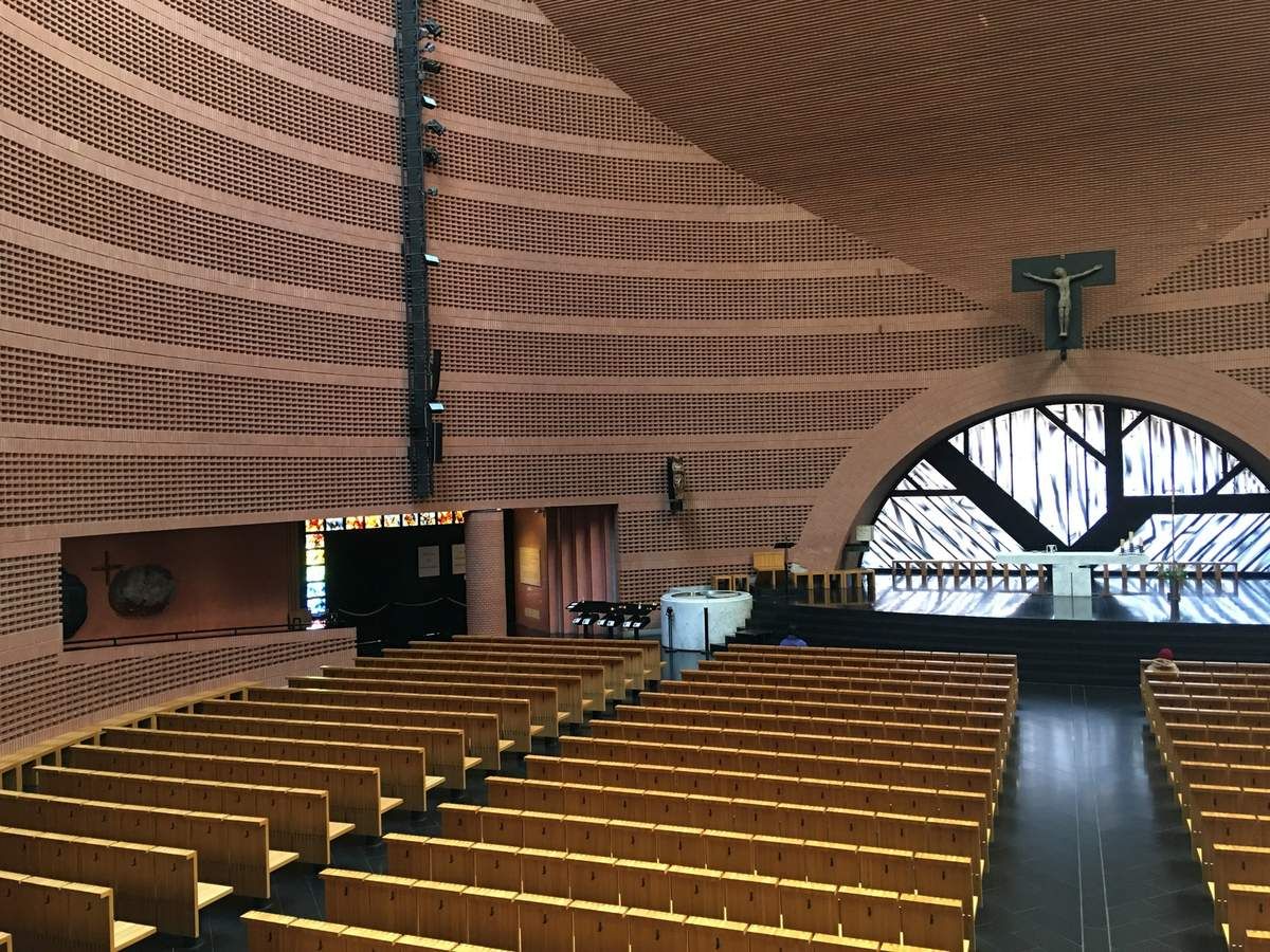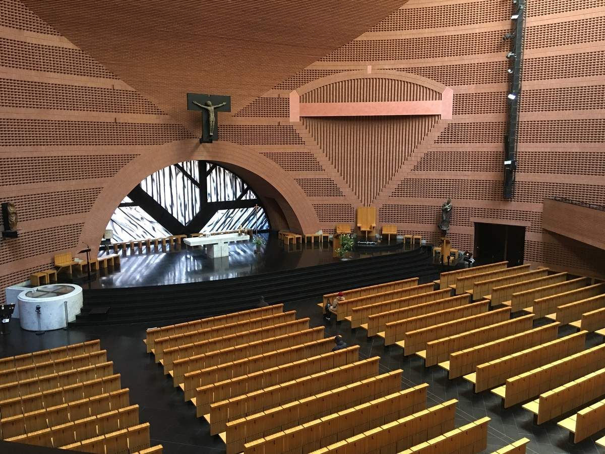 C'est l'architecte suisse-italien MARIO BOTTA qui réalisa cette cathédrale inaugurée en 1996.