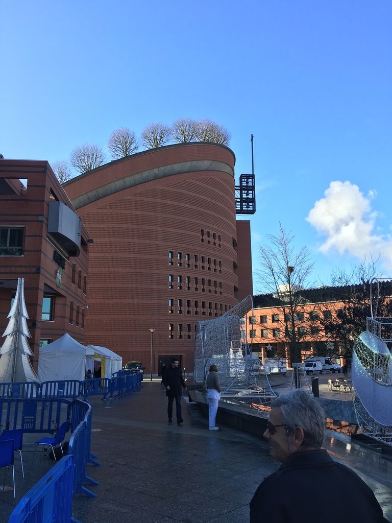 800 000 briques rouges de TOULOUSE représentant symboliquement les quatre éléments (les briques sont faites de terre et d'eau, séchées à l'air et cuites au feu).